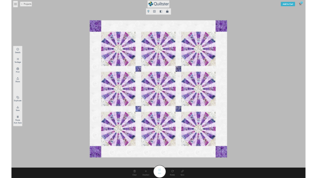 In this step, we’ll walk you through how to add fabric to your project and how to navigate the Block Editor section of the Quilt Planner.