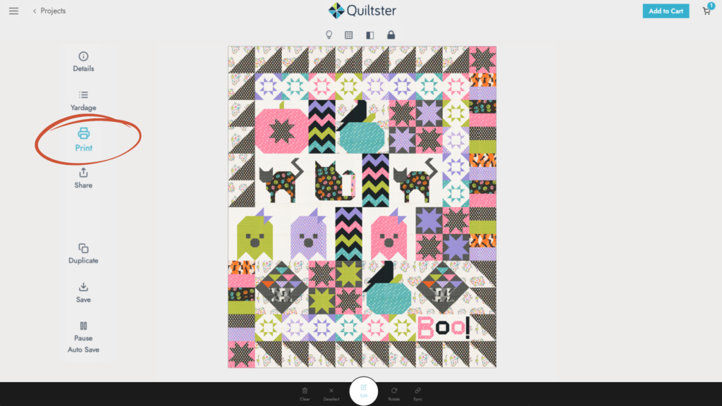 Even better, Quiltster lets you print and/or share your yardage chart making it easy to prepare fabric for your project.