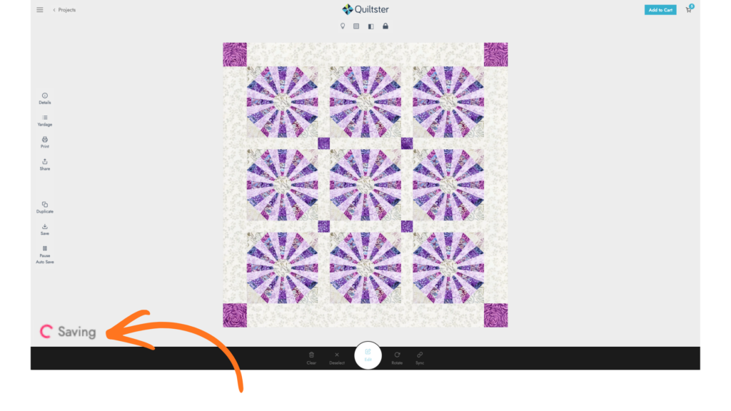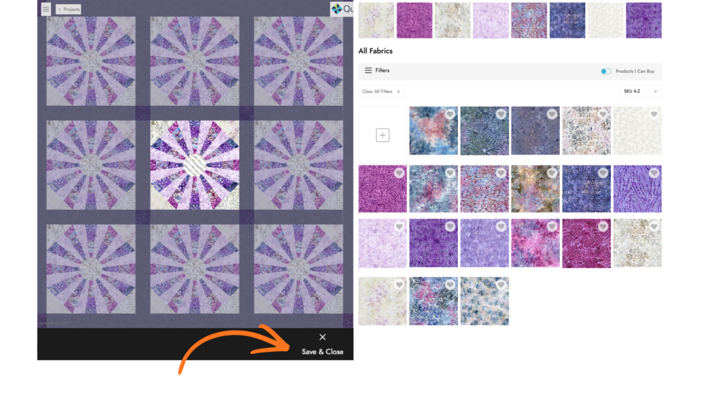 As you customize your quilt, your project automatically saves in the background.